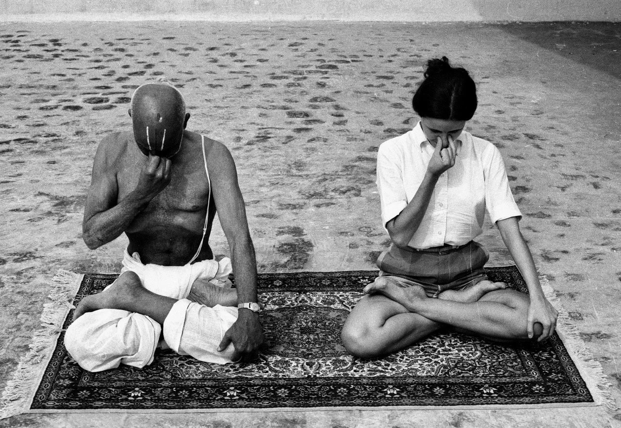 Image: Tirumalai Krishnamacharya & Indra Devi practice Nadi Shodhana